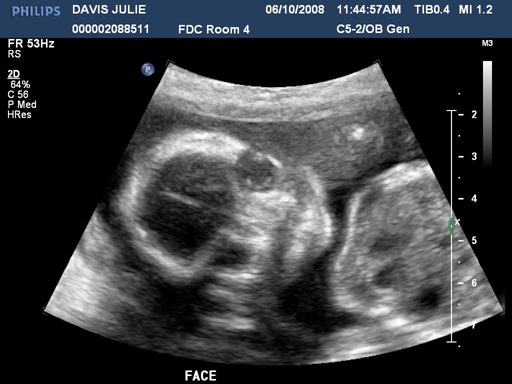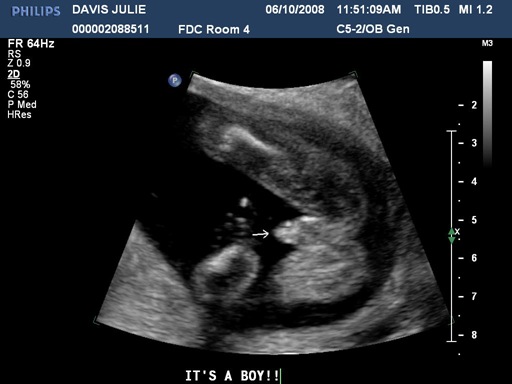 We went in for our first ultrasound today. It was a fun experience getting to see our first glimpses of the little life that is growing inside Julie’s belly. The ultrasound equipment at Winnie Palmer hospital is much better than when we had ultrasounds with our two daughters. But that was several years ago also. Seeing our baby’s little fingers, arms, heartbeat and all of the movements was a really neat experience. We also found out that we are having a little boy! We were all kinda hoping for that. Laurel and Marybeth were running around quoting a line from “Lady and the Tramp“…”Oh boy, it’s a boy! Oh boy, it’s a boy! Oh boy, it’s a boy!”