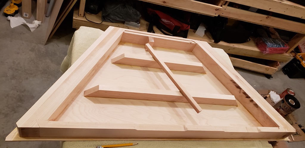 That helped me get to this point…a solid full sized frame made out of scrap wood…and it helped me learn from a couple of mistakes on scrap wood before cutting into my maple.