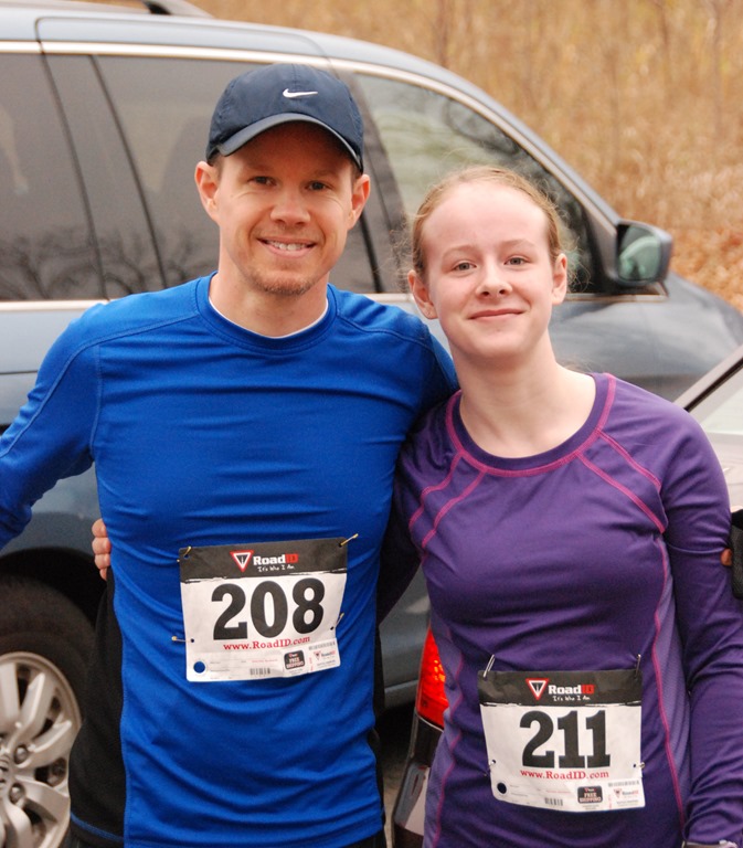 BTW…a big thanks to Tim Benjamin for coming out this morning and taking pictures of us before, during and after the race! Tim actually ran out on the course to take shots of us with about 3/4 mile left in the race. Then he kept running ahead of Laurel and taking shots of her over the last leg of the race. We got some awesome shots out of that.